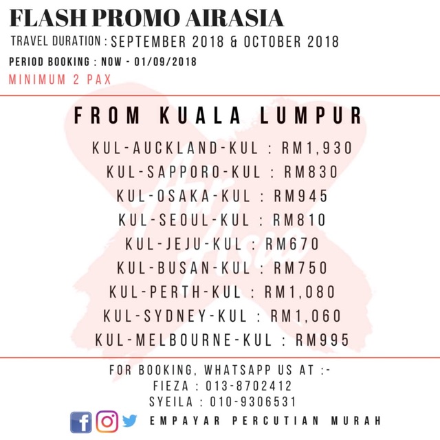 Pesan tiket airasia murah di nusatrip.com. Apalagi sekarang ada airasia bazaar 2018 yang diselenggarakan bareng bank bri yang bakal kasih kamu banyak kejutan. Mohon chat di line/wa sebelum melakukan pemesanan dgn format reservasi: Mengoperasikan penerbangan domestik di wilayah indonesia, internasional, dan merupakan asosiasi dari maskapai berbudget rendah asal malaysia, air asia. Airasia grab your airasiabigsale seats for as low as facebook.
