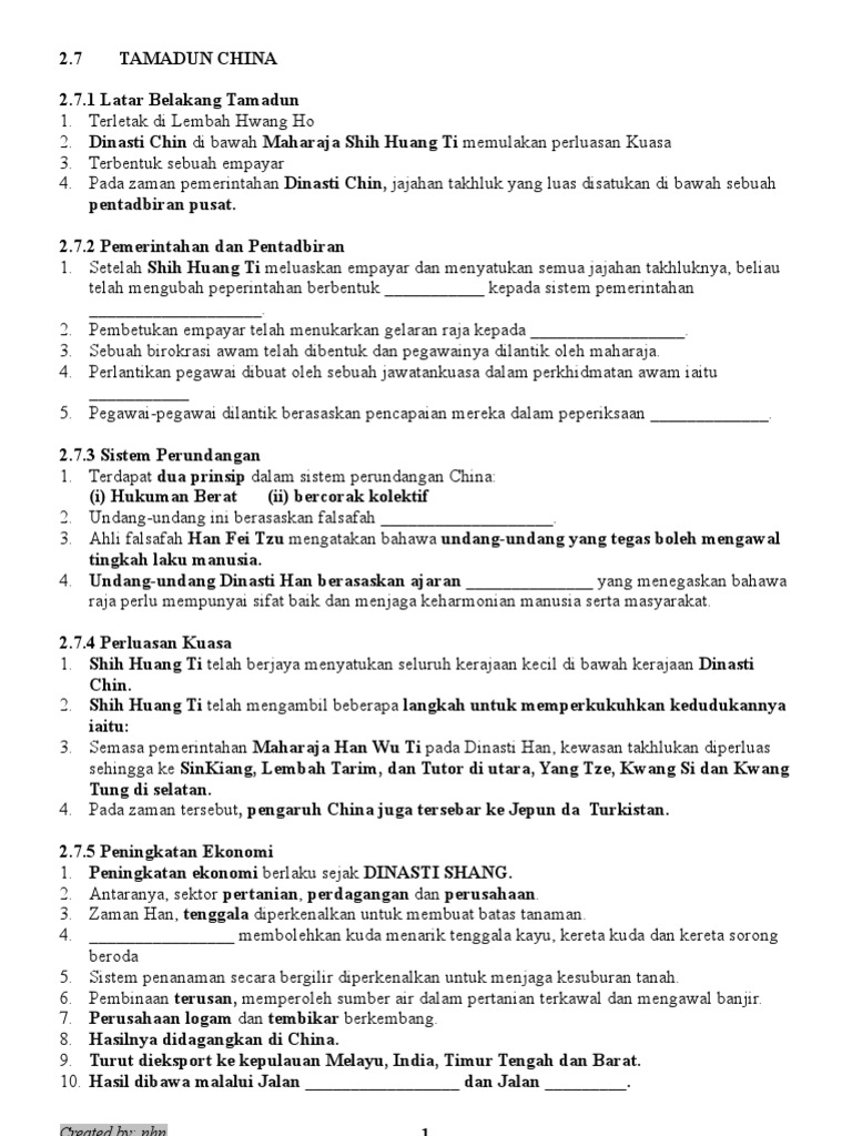 Latar belakang shih huang ti · maharaja shih huang ti adalah pengasas dinasti chin pada tahun 221 s.m. Namun, tidak dapat dinafikan bahawa beliau juga seorang pemerintah yang sangat kejam. Latar belakang shih huang ti · maharaja shih huang ti adalah pengasas dinasti chin pada tahun 221 s.m. As the emperor of the ch'in dynasty he established the parameters of dynastic rule that all others would follow for the next 2,000 years. Namanya sendiri bermaksud first emperor. Maharaja kuning atau huangdi 1 ialah seorang pemerintah dan wira budaya legenda cina yang tergolong di kalangan tiga tokoh mulia dan lima maharaja. Latihan karangan cara membuat karangan bahasa melayu tahun 4 latihan kata ganti nama diri tahun 1 pdf latihan imbuhan awalan dan akhiran tahun 4 latihan kata ganti nama bahasa arab latihan imbuhan imbuhan awalan tahun 3 latihan kata kerja aktif tak transitif latihan industri di shell latihan kata ganti nama diri tanya. Maharaja shih huang ti menghapuskan sistem feudal dan ganti dengan sistem wilayah 36 wilayah dinasti han sistem peperiksaan awan perlantikan pegawai pegawai kerajaan. Maharaja shih huang ti memperluaskan empayar hingga ke sg. 5 6 bahasa dan penulisan 27 perkembangan tulisan cina ini memberi sumbangan kepada perkembangan tamadun lain. 4 gambar 1 adalah tembok besar china yang dibina oleh maharaja shih huang ti pada zaman dinasti chin (221 s.m. Selama 10 tahun pembangunannya, puluhan ribu orang menjadi korban. Ibunya lu buwei yang dikenal dengan nama ibusuri zhao.