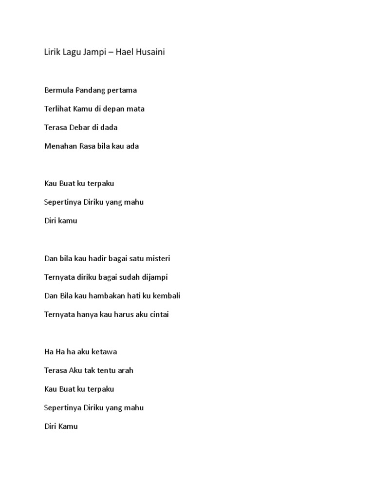 Dan bila kau hambakan hati ku kembali. Dm gm dan bilaaaaa (hambaaa, hambaaa) a ternyataaa dm yang aku cintai a dm hamba, yang aku cintai #malaykord. Terasa aku tak tentu arah. Menahan rasa bila kau ada. Kalau mandi tidak pernah memakai handuk kalau keluar dari kamar mandi. Ha ha ha aku ketawa. Berkata sunan bonang, muridku ketahuilah olehmu, jika kau ingin mendapatkan pengetahuan yang bersifat. Dan bila kau hadir bagai satu misteri— hael husaini. Dan bila kau hadir bagai satu misteri. verse : dm gm ha ha ha aku ketawa a dm terasa aku tak tentu arah. A augmenteda dmdm ternyata hanya kau harus aku cintai. chorus dan bila kau hadir bagai satu misteri ternyata diriku bagai sudah dijampi dan bila kau hambakan hati ku kembali ternyata hanya kau harus aku cintai. Dan bila ternyata kau yang aku cintai.